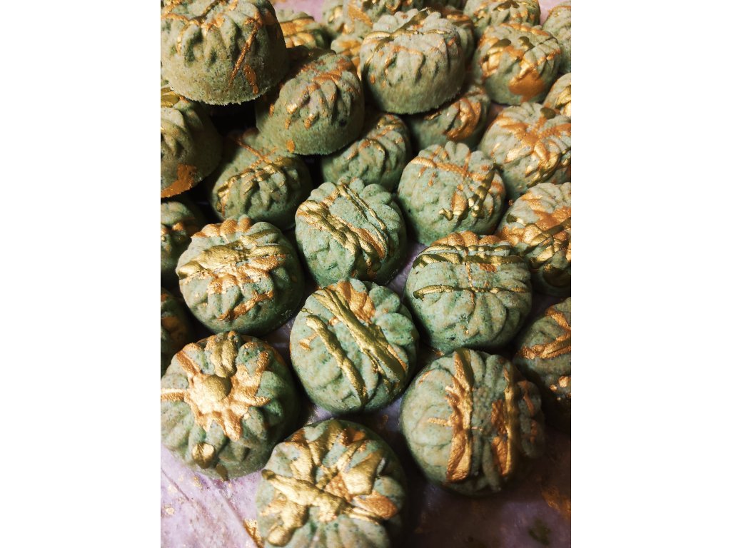 Bomba (šumivka) do koupele s obsahem Matcha extraktu pro detox a vůní esenciálního oleje ze zeleného čaje.