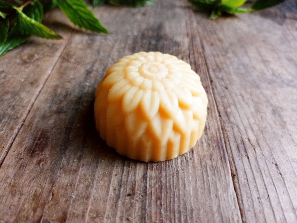 Obsahuje včelí vosk, kakaové máslo naturální, kokosový olej.
