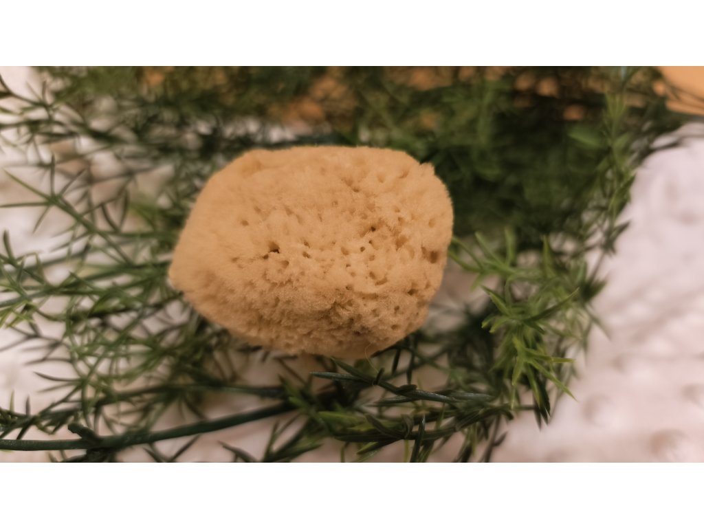 Výběrová přírodní mořská houba menších rozměrů s hustou strukturou a velkým množstvím pórů.