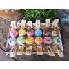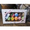 V naší dárkové sadě je dvanáct šumivých kousků s různými vůněmi esenciálních olejů nebo jemnou parfemací.